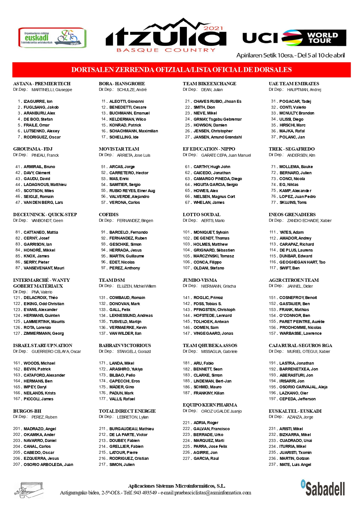 Brandon McNulty: «La idea era ir fuerte en la primera subida y luego recuperar en la bajada. Lo di todo en la subida final. Estoy muy contento con este resultado. Obviamente, mi objetivo era ganar, pero lo di todo, así que no me arrepiento. La Vuelta al País Vasco no será fácil, con la meta final en el muro de Sestao el martes. Tenemos un doble enfoque con Tadej Pogacar. Tengo buenas sensaciones y estamos deseando que lleguen los próximos días».
