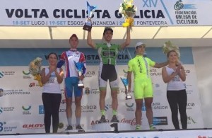 Jorge Cubero, en el centro del podio de la 3ª etapa de la Volta Galicia 2015.