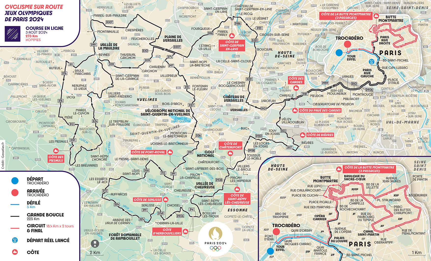 Estas primeras vueltas por la zona oeste de la región parisina, que cubrirán 225 km en hombres y 110 km en mujeres, servirán también a los aficionados para dar un primer vistazo a las sedes olímpicas y paralímpicas del Golf National y el Vélodrome National en Saint-Quentin-en-Yvelines, casa de la Federación Francesa de Ciclismo.