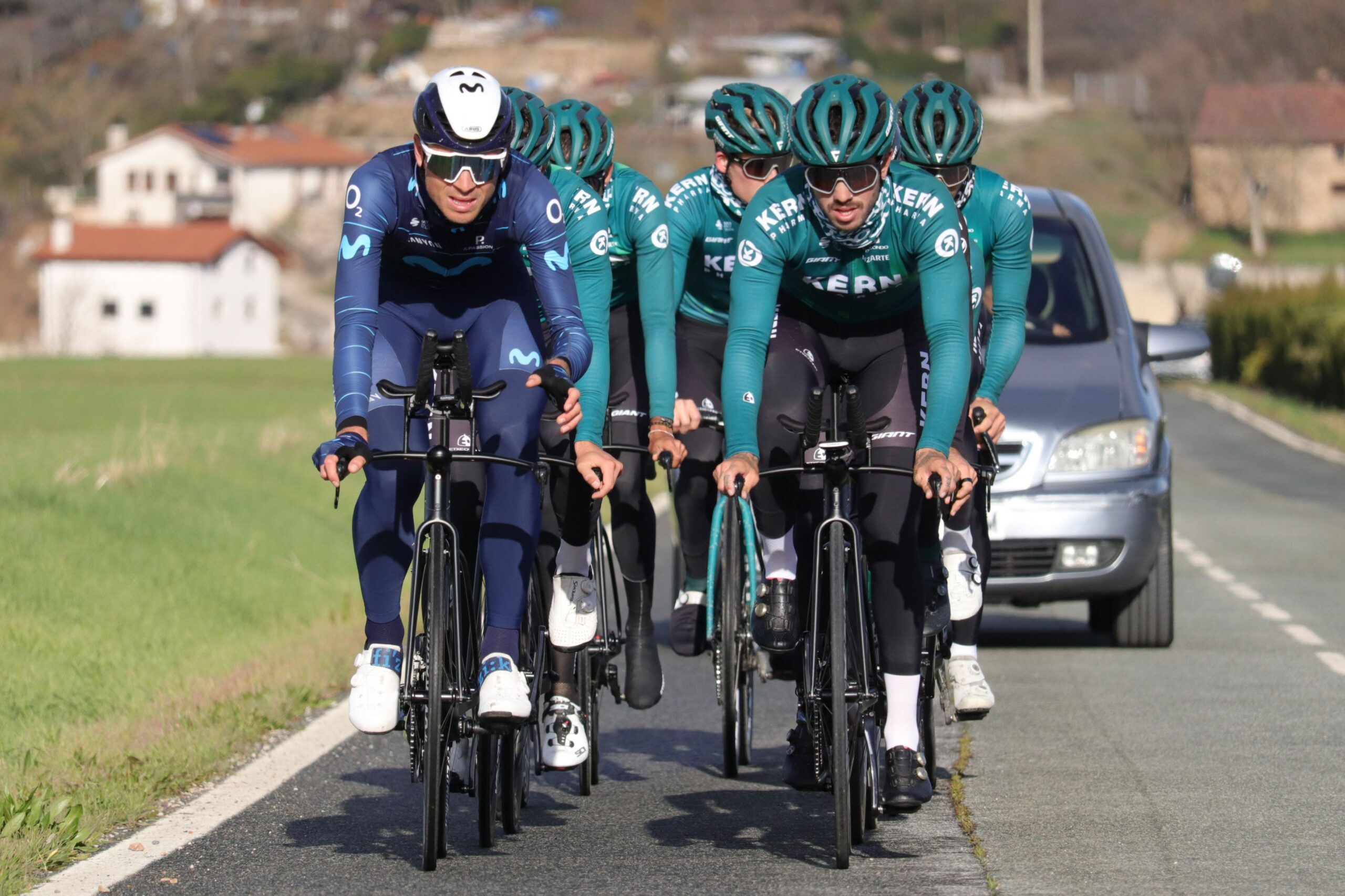 Elosegui, aún con los colores del Movistar, mientras entrena con sus nuevos compañeros © Kern Pharma