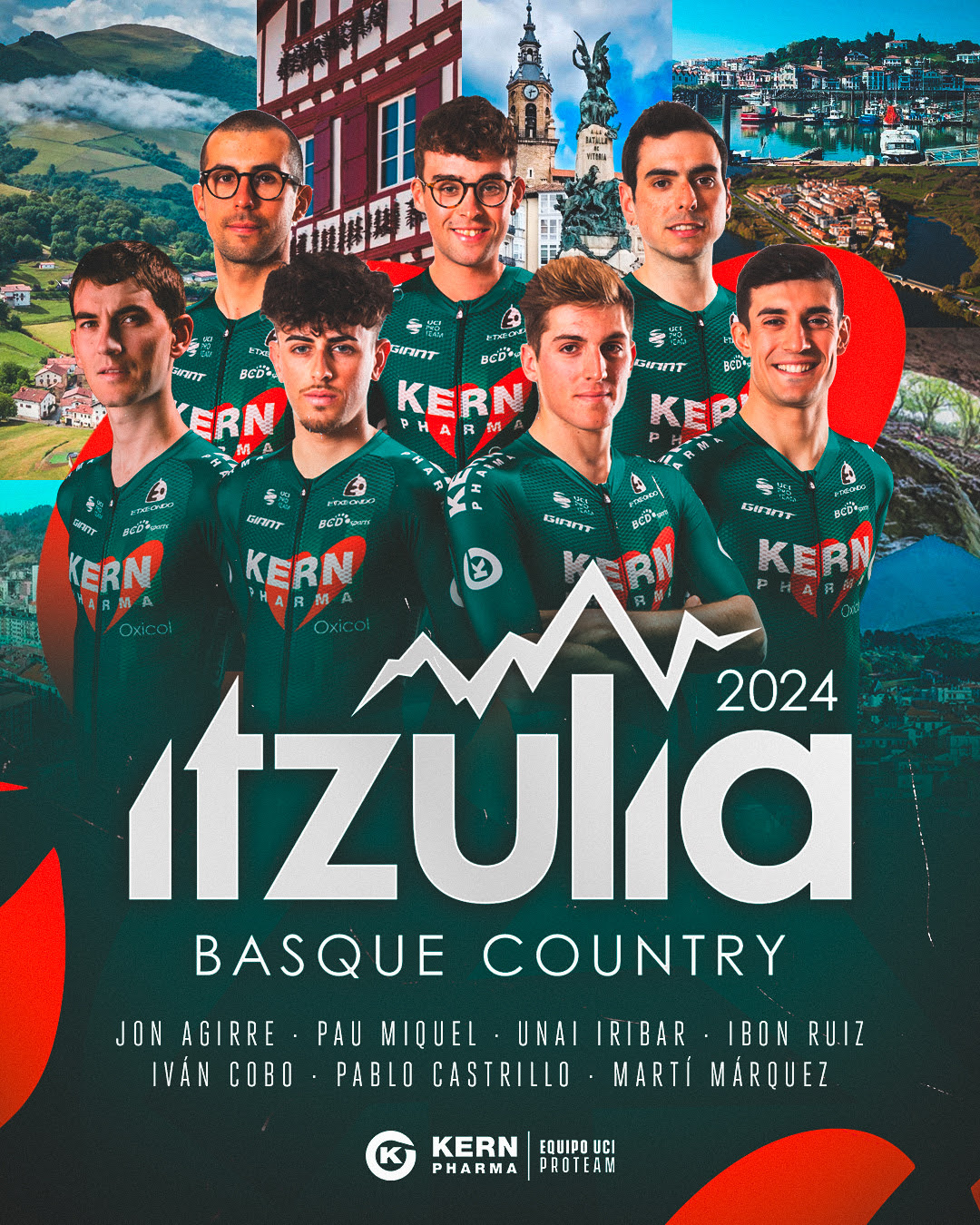 De lunes a sábado, los corredores del Equipo Kern Pharma tomarán la salida en una prueba tan única y distinta al resto como es la Itzulia Basque Country. La carrera vasca, que este año cumple 100 años desde su primera edición, presenta a lo largo de sus seis etapas tanto contrarreloj y montaña como parciales más favorables a una fuga o un posible sprint en un grupo reducido.