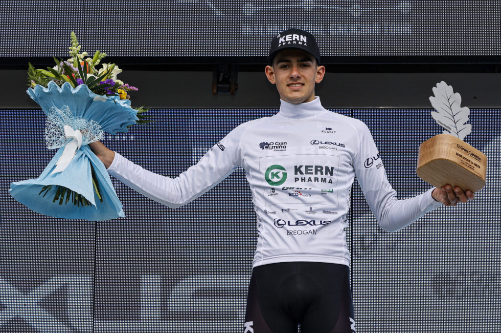El Equipo Kern Pharma completó este domingo un fantástico estreno de O Gran Camiño (España, UCI 2.1, 24-27/02). Una contrarreloj individual de 15,8 kilómetros en el municipio de Sarria puso el broche final a la recién estrenada ronda gallega, donde los jóvenes del Equipo Kern Pharma exhibieron, un día más, el gran nivel que han alcanzado este inicio de temporada. Urko Berrade, especialista en la modalidad, fue el mejor clasificado del conjunto farmacéutico en la cuarta y última jornada, lo que le valió para ser también octavo en la clasificación general. Igor Arrieta concluyó séptimo en el global y, además, se impuso en la clasificación de los jóvenes. Mark Padun (EFE) se llevó la victoria parcial y Valverde (MOV) la general.