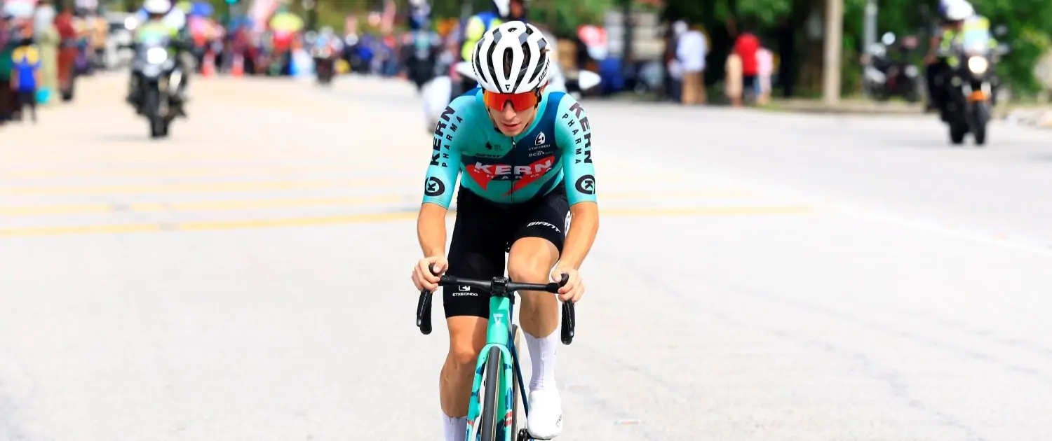 Tras una emocionante persecución con el pelotón pisándole los talones, Nil Gimeno resistió con enorme fortaleza rodando por las calles de Kuala Lumpur. Solo un ataque del vencedor Gate (XAT) dio al traste con sus opciones: ni siquiera el grupo principal pudo alcanzar al ciclista del Equipo Kern Pharma, que cruzó la meta en 3º lugar.