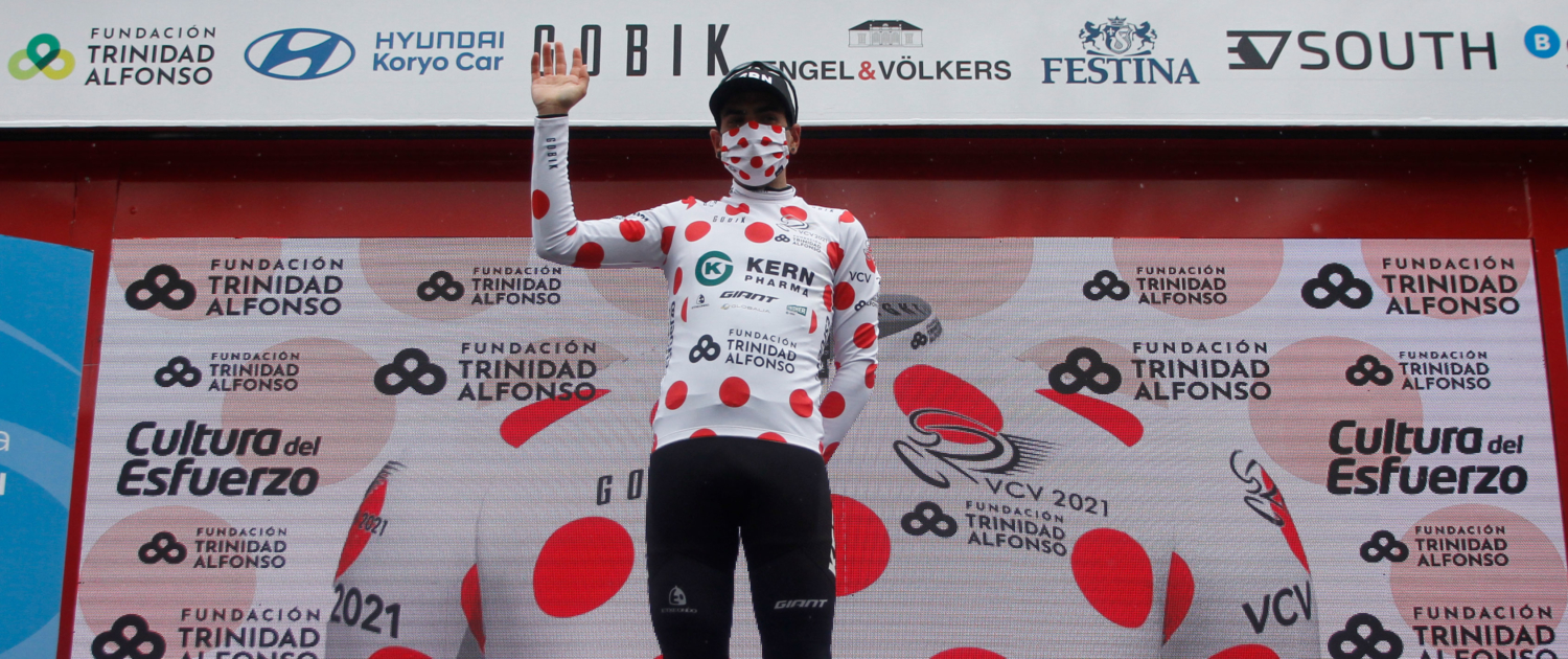 El Equipo Kern Pharma volvió a ser protagonista en la segunda etapa de la Volta a la Comunitat Valenciana. Tras su aventura del miércoles, Ibon Ruiz repitió presencia en la escapada del día y, vestido con el maillot de puntos rojos, pasó primero por el único alto de la jornada, Hondón de los Frailes (2ª, km69). El alavés afianzó así su liderato en la clasificación de la Montaña, al frente de la cual figura gracias a haber coronado antes que nadie todos los puertos de la carrera, con 27 puntos por 8 de de Teugels (TIS) y 6 de Bassett (RLY). Sólo quedan 21 puntos en juego en esta Volta a la Comunitat Valenciana, y todos ellos se pondrán en liza este viernes en una etapa con salida en el municipio valenciano de Torrent y meta en la cima del Alto de la Reina (2ª).