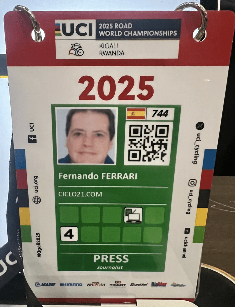 Las ocasiones son únicas y me apresto a vivir en vivo y en directo la entrada triunfal. Mientras de reojo observo a su emocionada novia Urska Zigart, pendiente de las imágenes y de los locutores. Cruza Pogacar y el revuelo lógico. Poco más tarde ingresan Evenepoel, Healy y en octava posición el descolocado Ayuso que al final fue el único español en meta junto a un buen Carlos Canal. Miranda, Labarga y servidor esperamos que el español recupere las pulsaciones para conocer sus sensaciones. Móvil en mano, nos aprestamos a preguntar por turnos, pero Ayuso, sin mirarme a la cara, dice que «a Fernando no le voy a responder». No le respondo para no enturbiar sus declaraciones y dejo que lo hagan mis colegas. Tras acabar le pregunto porqué no me responde. «Ya sabes por qué». Sí. No me responde porque publicamos en su día el positivo de un colombiano que militó en 2024 en su equipo júnior Ayuso Team. Como en la Volta a Catalunya -donde rechazó recibir su trofeo TOP Ciclo 21– sigue erre que erre confundiendo las cosas, despreciando a los lectores de Ciclo 21 a su mediador, obstruyendo el derecho constitucional a la información y olvidándose de que estaba representando a la selección española de ciclismo, sufragada por la RFEC y el Consejo Superior de Deportes. No es excusa que tenga 23 años. Ya es mayor de edad y algún día se dará cuenta de su error, falta de respeto y profesionalidad vetando unilateralmente a un medio especializado español enviado exprofeso a la cita ruandesa. Una situación que vieron los federativos sin preguntarme nada y que me temo quedará sin reprimenda alguna a su convocado. Siempre hay otros caminos de apelación.