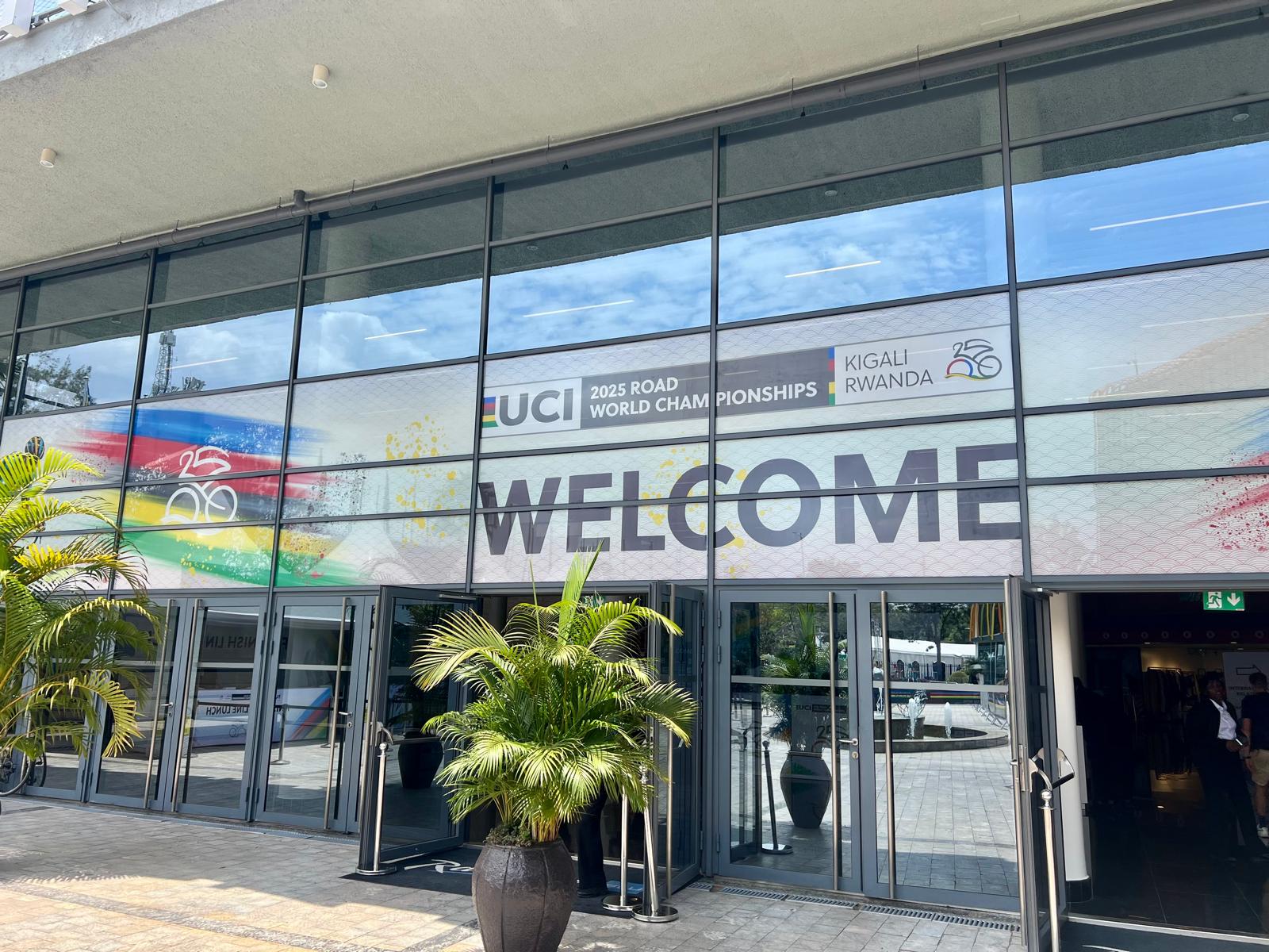 El breve paseo empieza a llamar la atención. El perfecto asfalto, las vallas ya situadas con la rampa de los tríos preparada, y policía, mucha policía por todos los flancos. La sala de prensa está situada en el Centro de Convenciones, junto al hotel oficial de la UCI y todo el escenario de la meta, la zona mixta de entrevistas, el parque cerrado para la UCI y sus invitados, los «boxes» de las selecciones y la zona abierta para los aficionados locales y foráneos con carpas de los patrocinadores exponiendo sus productos. El habitual montaje -a cargo de ASO francesa y Golazo belga contratados por la Federación Ruandesa– es el mismo pero diferente por su inédita ubicación.