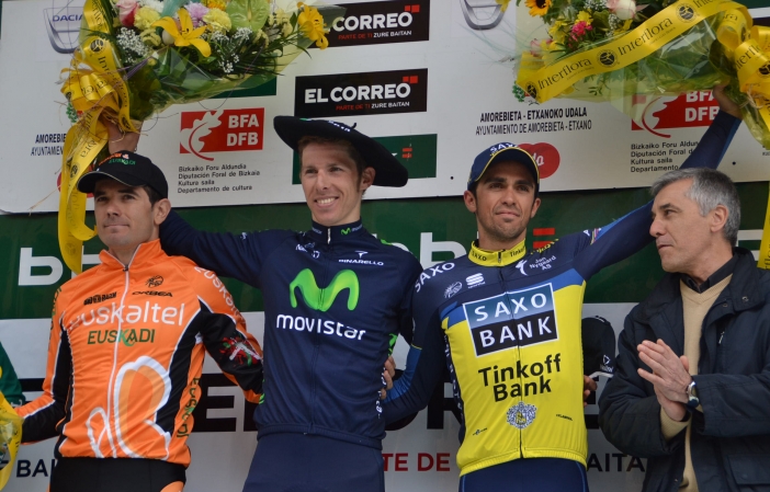 La escasa diferencia de Intxausti y Contador en el último descenso, siempre con el vizcaíno llevando el peso del dúo, quedó reducida a la mínima expresión en la recta de meta, donde el trabajo de EUS en el grupo perseguidor de una veintena de unidades llevó en volandas a Rui Costa, hábil para resguardarse hasta el último momento y sumar su 13º triunfo como profesional y el tercero en cuatro días -tras los dos de Quintana en la Vuelta al País Vasco- de un Movistar Team que también colocó al propio Intxausti (4º) y a Herrada (5º) en el top-5 de la jornada.