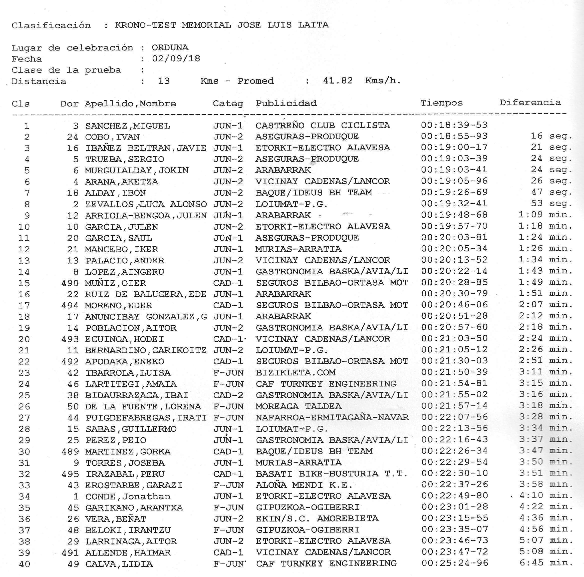 Miguel Sánchez y Luisa Ibarrola han sido los mejores en la localidad vizcaína de Orduña, sede del Krono-test Memorial José Luis Laita, prueba organizada por Elorrioko Banan Banan ZKE para la categoría júnior masculino y femenino.