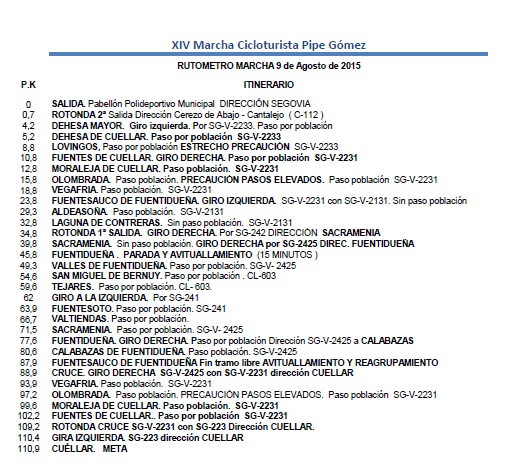Serán 110,9 kms. con salida desde el Pabellón Deportivo Municipal de Cuéllar a las 9 horas.