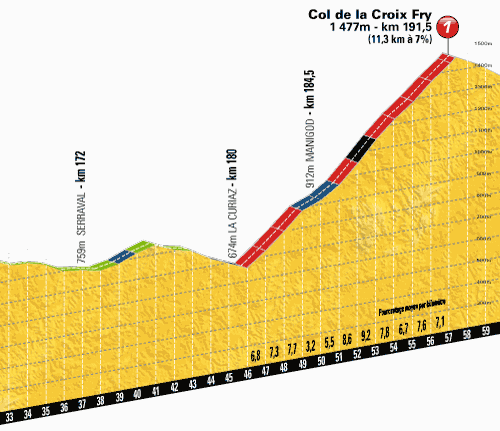 -Km 191.5 – Col de la Croix Fry (1 477 m). 11.3 km de subida a 7% – categoría 1