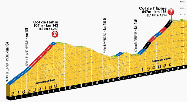 -Km 165.0 – Col de l’Épine. 6.1 km de subida a 7.3% – categoría 1