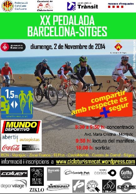 Este domingo 2 de noviembre la Federació Catalana organiza la Pedalada Barcelona-Sitges 2014 que, como todos los años, reivindicará la seguridad de los ciclistas en las carreteras y ciudades bajo el lema “Compartir con respeto es más seguro”.