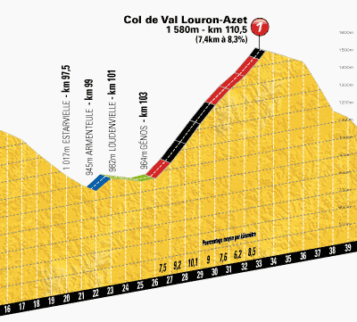 -Km 110.5 – Col de Val Louron-Azet (1 580 m). 7.4 km de subida a 8.3% – categoría 1