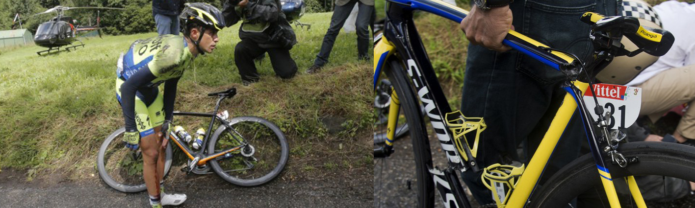 Algo así sucedió ayer en los minutos posteriores a la caída y abandono de Alberto Contador. Entre los aficionados existe, cada vez más, un muy profundo conocimiento de los materiales usados por los ciclistas profesionales. Por ello, una foto en la que aparecía una bicicleta con el dorsal 31 (el de Contador) con el cuadro completamente roto, no tardó en hacerse viral. Muchos especularon con la posibilidad de que el de Pinto se cayese a causa de una rotura previa de su montura y no por los motivos esgrimidos en la versión oficial. Por fortuna, la enorme presencia de reporteros gráficos en el pelotón permite, pasados los primeros momentos de dudas, confirmar o desmentir esas primeras informaciones.