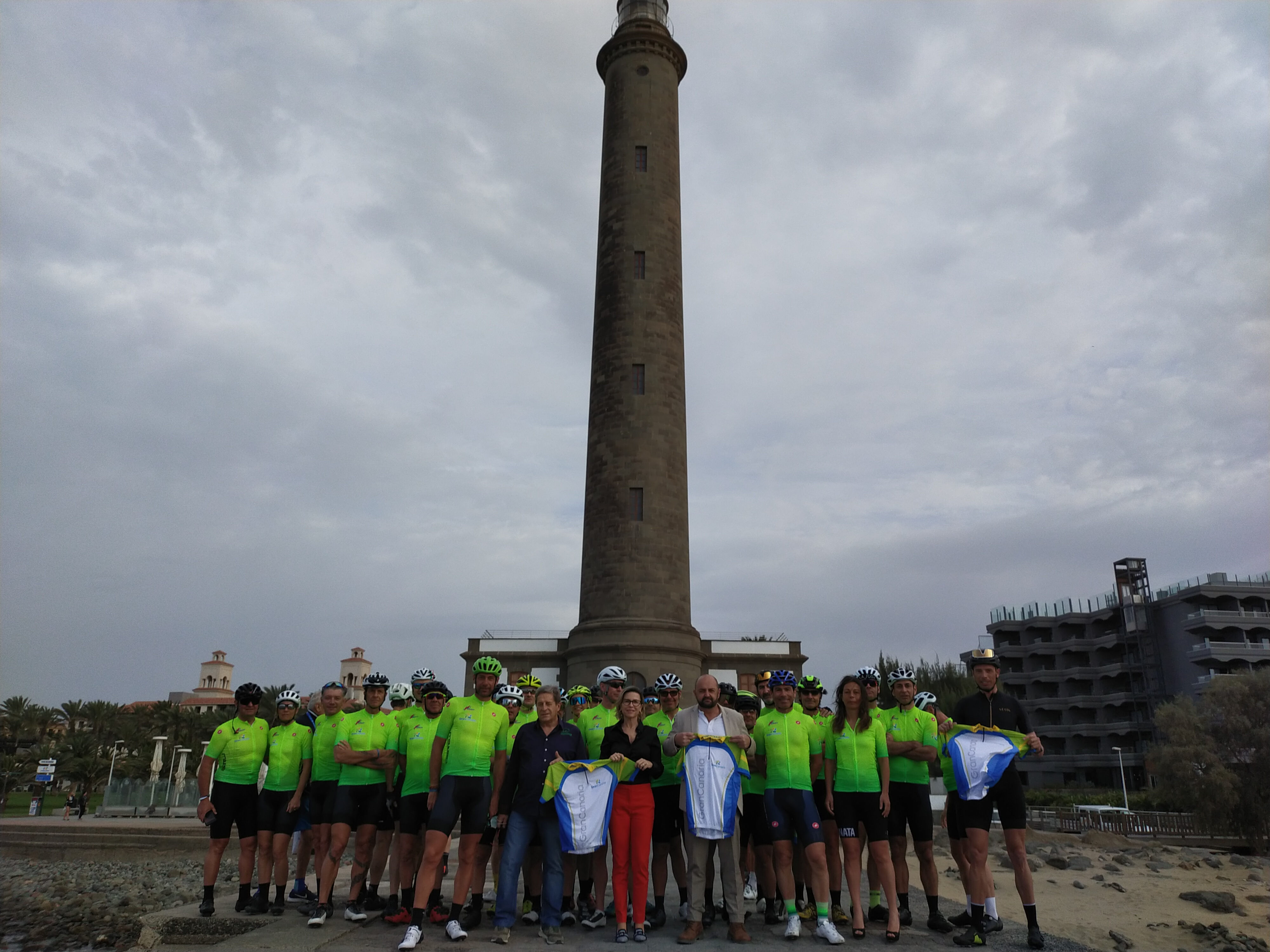 El consejero de Turismo de Gran Canaria, Carlos Álamo, y la alcaldesa de San Bartolomé de Tirajana, Conchi Narváez, recibieron este miércoles, 9 de febrero, a un destacamento del grupo, junto al Faro de Maspalomas, antes del inicio de una jornada de kilómetros para el grupo de ciclistas. En el acto de recibimiento también estuvo presente Ángel Bara, promotor e impulsor destacado del deporte del pedal en Canarias durante los últimos 30 años.