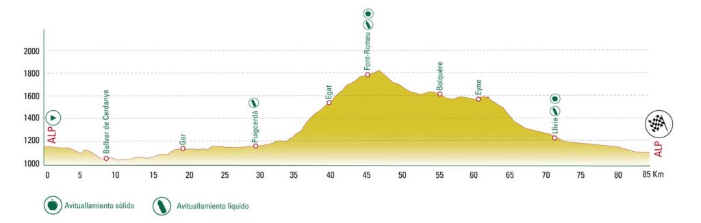 Con una distancia de 86,7 km, la ruta Sport es la versión corta la marcha cicloturista. Los participantes que salen a darlo todo cruzan la meta todos los años con tiempos muy por debajo de las tres horas. Sin embargo, esta ruta ciclista también es idónea para debutar en el cicloturismo. Por un lado, por su situación en el calendario de marchas cicloturistas, el 3er fin de semana de julio. Y, por otro lado, porque combina una distancia asequible con una dureza contenida, ya que si observamos su perfil veremos que presenta como única subida destacable el Col d’Egat hasta Font-Romeu (1.840 m), que cada uno puede afrontar según su motivación y fuerza de piernas. Los últimos 30 km, por el Coll de Llo, Saillagouse y Puigcerdà, son agradables de recorrer ya que el desnivel es favorable hasta la meta en Alp.