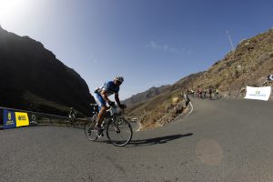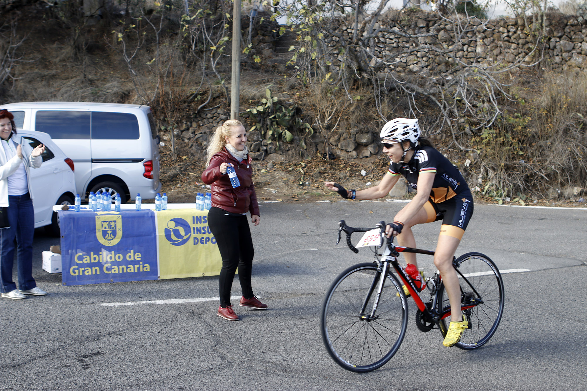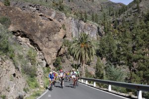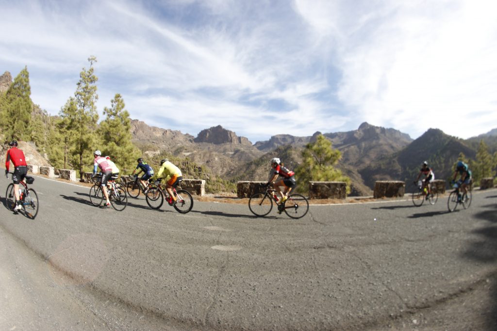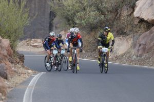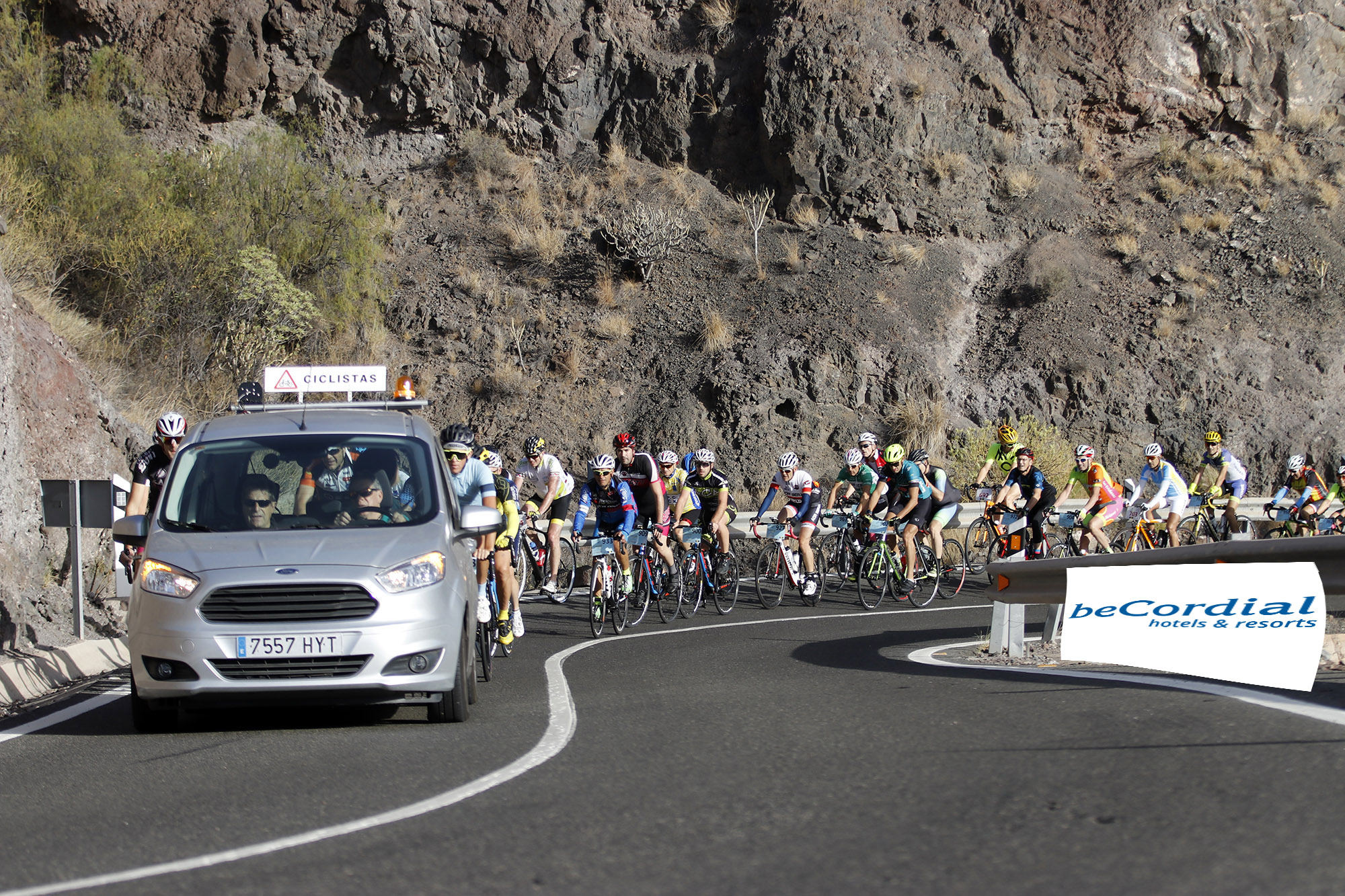Todavía quedaban 11 kilómetros para coronar el puerto y llegar hasta la Villa de Artenara. La carretera seguía mirando al cielo azul, al igual que los ciclodeportistas con duros rampones del 15 % y algún kilómetro por encima del 11 %. Tras coronar y sortear un giro de casi 90 grados, el recorrido continuaba hacía Tejeda, con El Roque Bentaiga y Los Tres Reyes Magos como testigos privilegiados del paso de los ciclistas. En este tramo se han acrecentado las hostilidades entre los primeros, formándose dos grupos que poco después paso a tres.