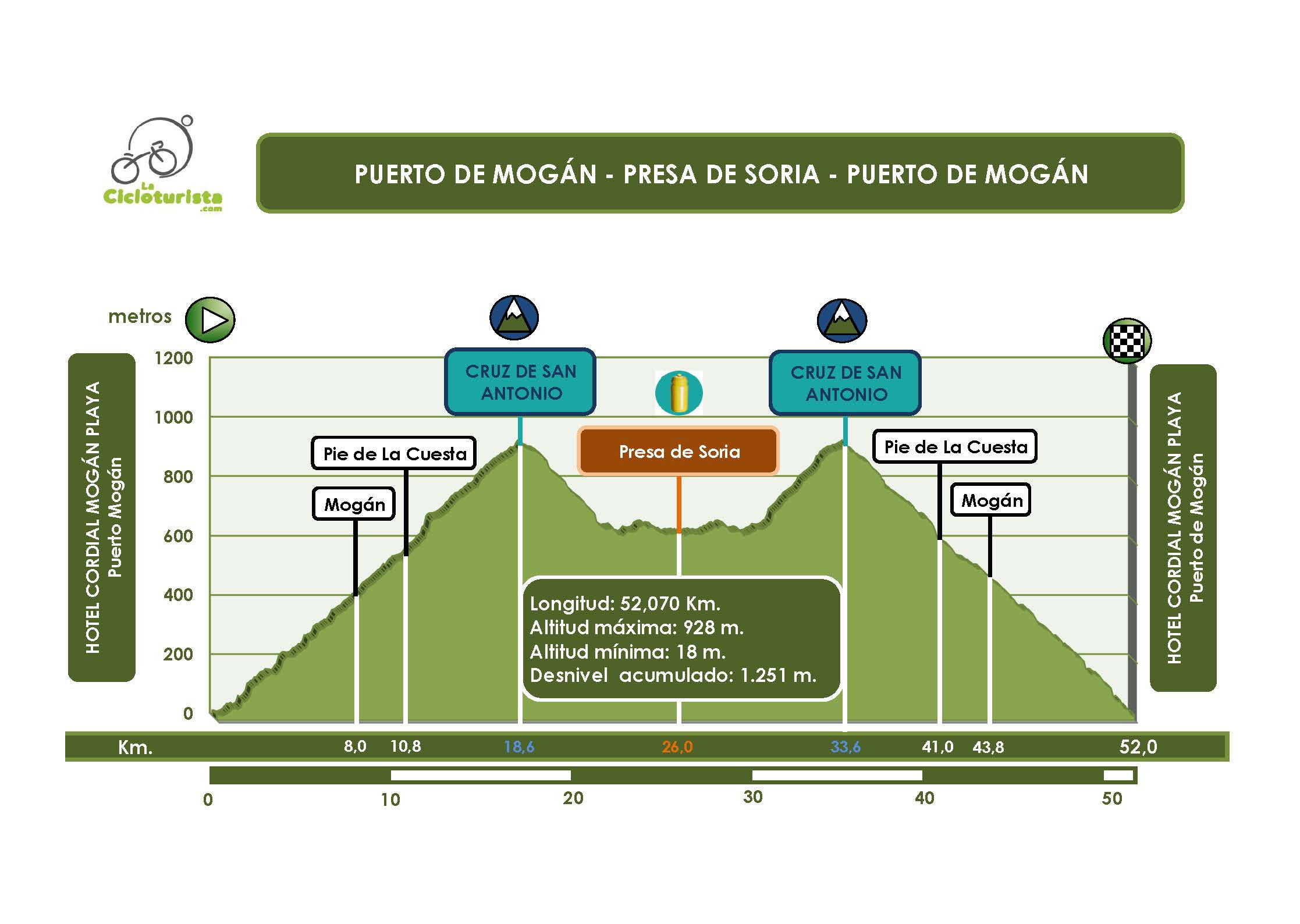 Este jueves se celebrará la segunda etapa de la Vuelta Cicloturista Gran Canaria-Costa de Mogán “BE CORDIAL” que llevará al pelotón cicloturista hasta la Presa de Soria, un lugar mágico a través de una de las carreteras más bellas y espectaculares de la Isla, como es la Subida hasta la Cruz de San Antonio. Además, los cicloturistas tendrán el añadido de circular por una de las carreteras más serpenteantes y excitantes de esta zona, como es la que lleva desde la Carretera GC 605 hasta Barranquillo Andrés.