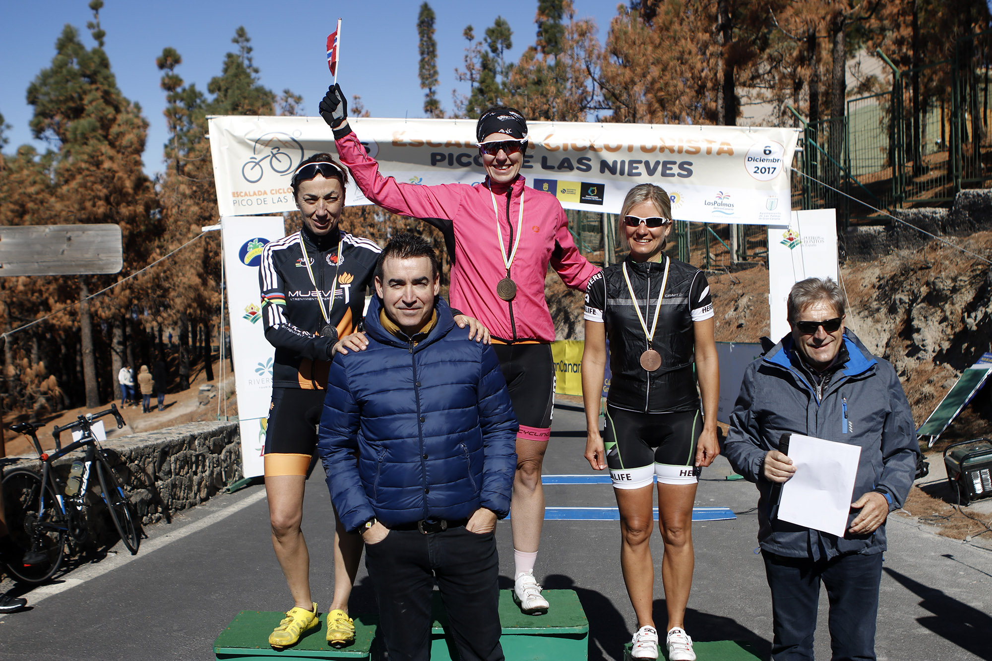 En el apartado femenino la más rápida ha sido la debutante noruega Janne Smauget con un tiempo de 1 hora, 50 minutos y 34 segundos. Fenomenal también el registro marcado por la exciclista profesional salmantina Dori Ruano en su primera aventura ante El Pico de Las Nieves, ha logrado el segundo mejor registro.