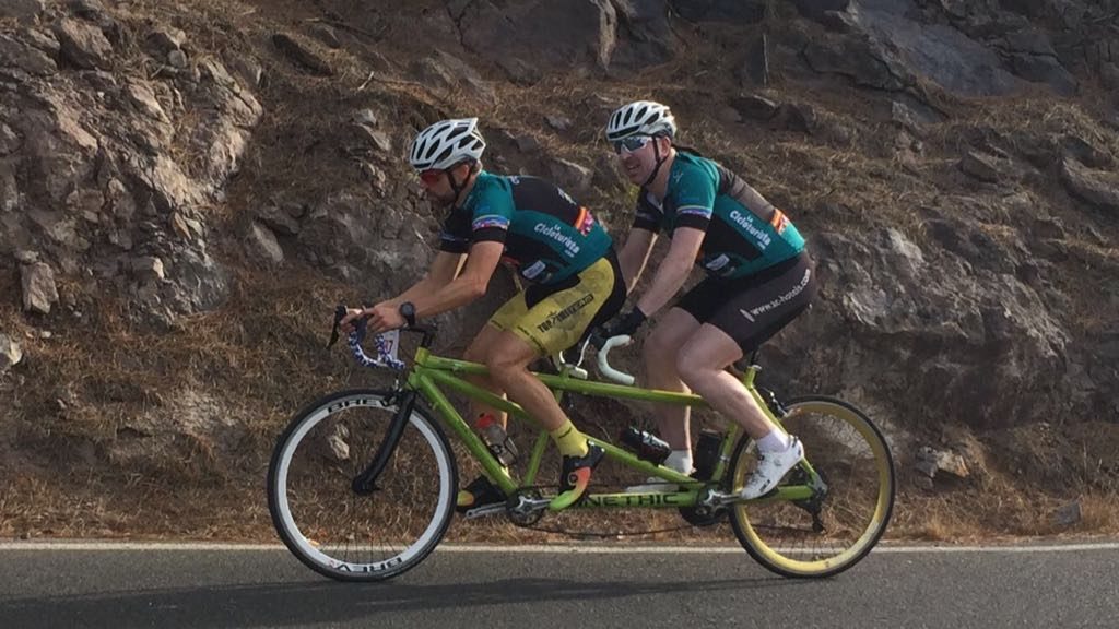 Mención especial merece el cicloturista oscense Diego Ballesteros, que tras un atropello que le dejo en una silla de ruedas, cambio la fuerza motriz de los pedales de su bicicleta por la de las manos y con su handbike ha hecho bueno sus lemas: “lucha, esfuerzo, tenacidad, constancia, perseverancia son palabras que guían mi vida” y ha sido capaz de superar al gran coloso canario.