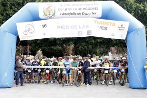 Magnifico ambiente en la salida situada en la Plaza del Rosario de Agüimes, en una mañana agradable Y con sol. Hoy era un día muy especial para los cicloturistas, muchos volvían a desafiar al coloso grancanario y lo hacían con mucho respeto, otros por primera vez se enfrentaban a este reto, sabedores que el principal obstáculo más que la dureza de la carretera era su propio cuerpo y principalmente su resistencia mental.