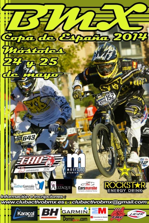 CartelBMX_Móstoles_14El Club Activo BMX de Móstoles organizará en esta localidad, los días 24 y 25 de mayo, la Copa de España de BMX, que este año tendrá una sola cita, aunque con dos pruebas puntuables distintas: el sábado por la tarde (16,30 a 19,20) y el domingo por la mañana (10,00 a 12,50).