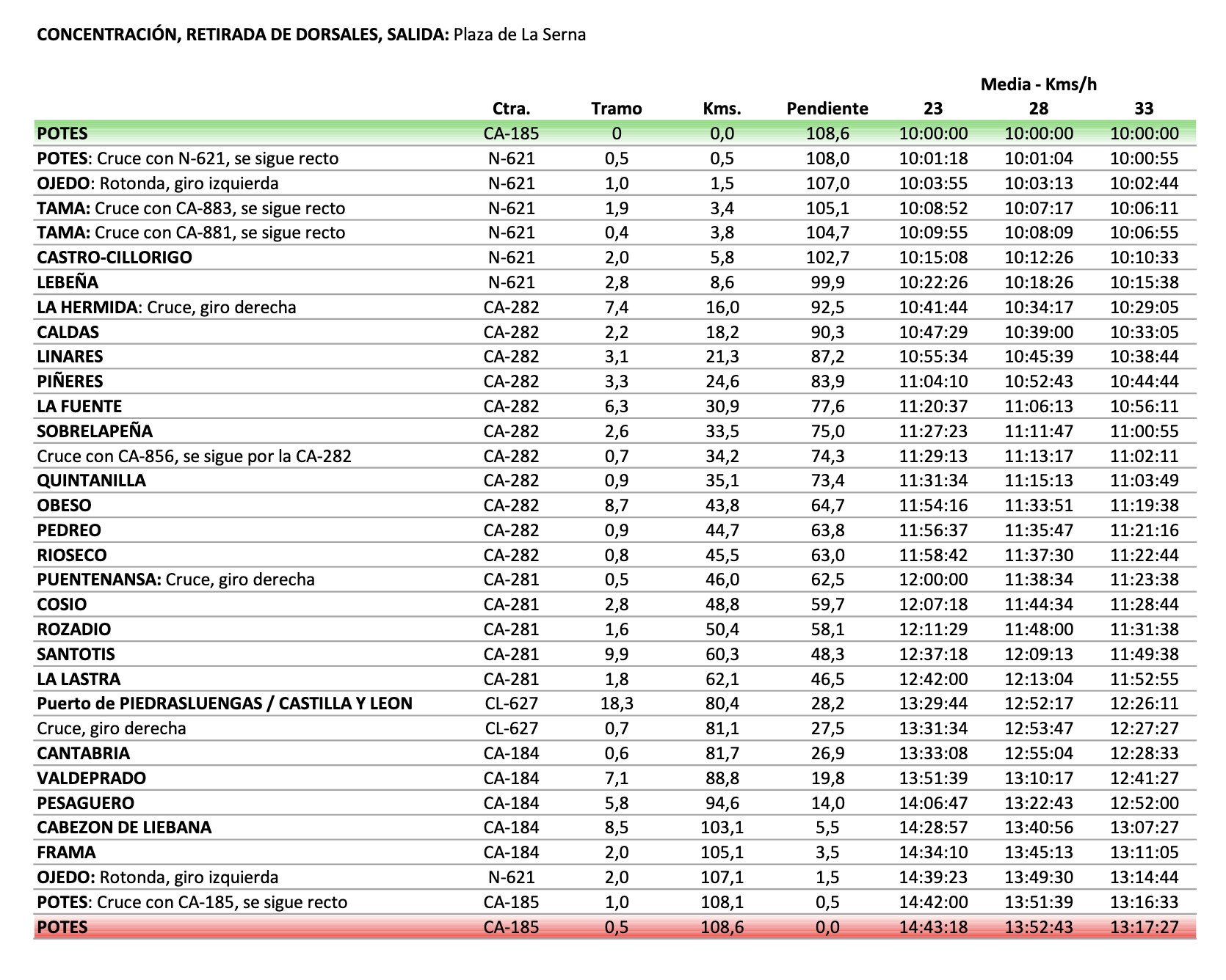 En la línea de salida, este año estaban 168 ciclistas dispuestos a afrontar los 108km de la prueba, con la ascensión de tres puertos, La Collada de Hoz, La Collada de Ozalba y el puerto de Piedrasluengas, autentico coloso son los 32km de ascensión.