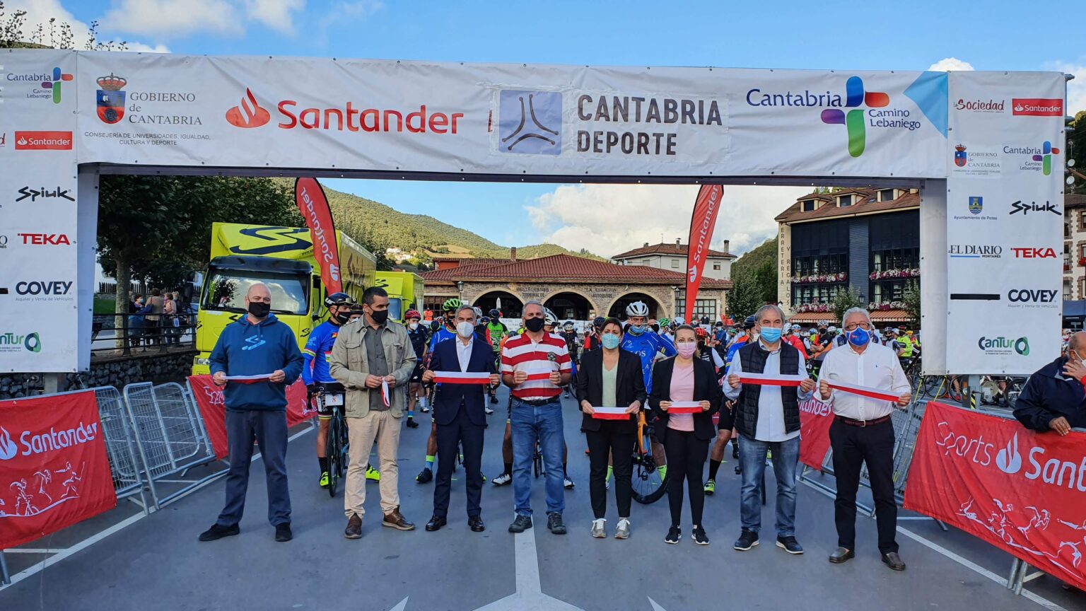 La prueba comenzaba con el corte de la cinta donde estaban presentes representantes de las instituciones y empresas, órganos sin los cuales, una prueba de esta envergadura no sería posibles, así como representantes de la Federación Cántabra y el director de Sportpublic, organizador de la marcha.