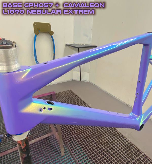 Existen alrededor de cuarenta colores camaleónicos catalogados. Estas pinturas especiales para bicicletas tienen la particularidad de cambiar de color según el ángulo de visión. Más concretamente, reflejan los colores principales cuando se miran de frente y los colores secundarios en los ángulos. Por lo tanto, cuanto más angulosa es una pieza, más se puede ver el cambio de colores. Los cuadros de bicicleta son ideales para ello.