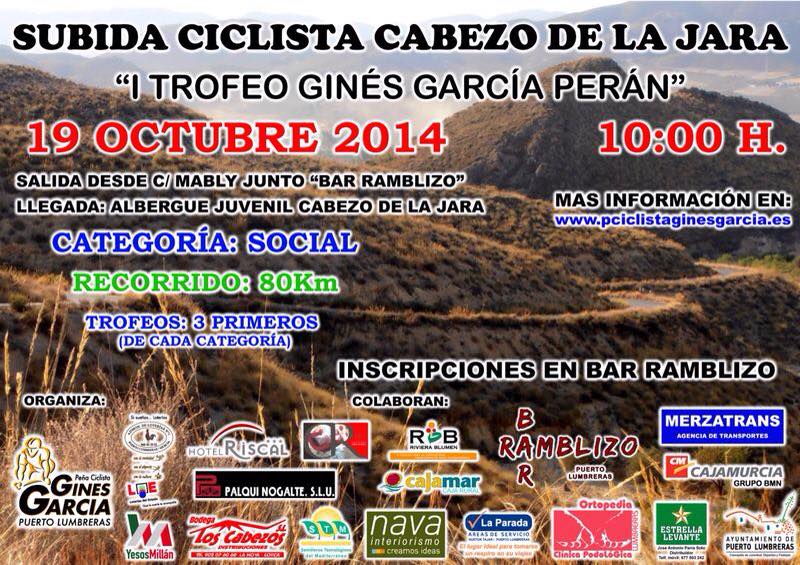 Animados por la iniciativa de Francisco Miguel García López, así como de antiguos socios y ciclistas de la Peña, se recupera esta prueba con motivo de las fiestas patronales de Puerto Lumbreras con el nombre de Trofeo Ginés García Perán, en la que colabora Peña Ciclista Ginés García junto con el Ayto. de Puerto Lumbreras. Se disputara este próximo domingo 19 de octubre a las 10 horas.