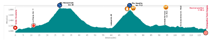 La SALIDA se realizará a las 08:00 horas desde la Plaza de la Artillería, junto al Acueducto, continuando por Avda. del Padre Claret, y será neutralizada hasta la Granja de San Ildefonso. Desde la rotonda situada en esta población (km. 11) se realizará la salida del tramo cronometrado, circulando por los puertos de Navacerrada, Morcuera, Canencia y Navafría y las localidades que figuran en el Rutómetro detallado a continuación, hasta la LLEGADA situada en Cl Dámaso Alonso, s/n – Pabellón Deportivo Municipal Pedro Delgado.