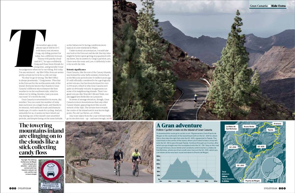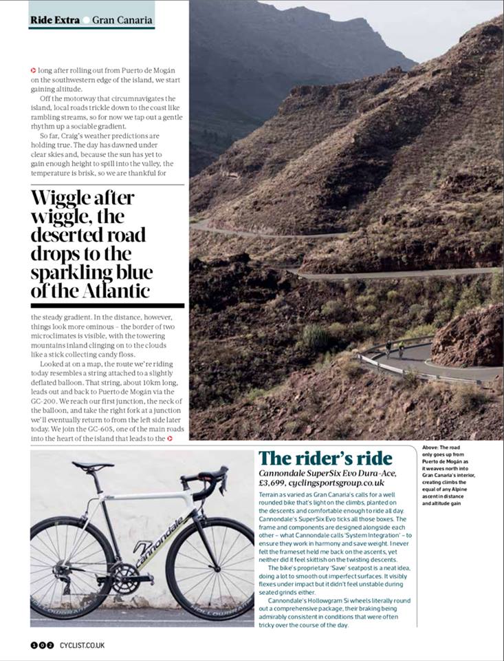 La revista británica especializada Cyclist dedica un extenso reportaje de 10 páginas a #GranCanaria en su número de agosto, en el que compara las sinuosas y seguras carreteras de la isla y sus espectaculares paisajes con las condiciones que pueden disfrutar los deportistas que entrenan en los Alpes.