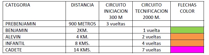 Las distancias a recorrer por cada una de las categorías serán las siguientes: