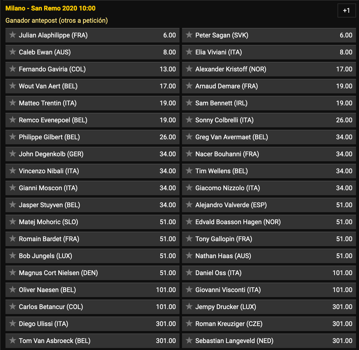 Una de las clásicas con mayor incidencia de la temporada es la Milán-San Remo. A mediados de marzo se darán cita por las carreteras italianas los mejores ‘clasicómanos’ del pelotón, para intentar reinar al finalizar los 300 kilómetros de esta dura prueba. La igualdad será la predominante en esta prueba, aunque sobre el papel y según apuntan las apuestas en directo, hay algunos ciclistas que parten con más chances de seguir haciendo historia en la clásica con mayúsculas del calendario ciclista internacional.
