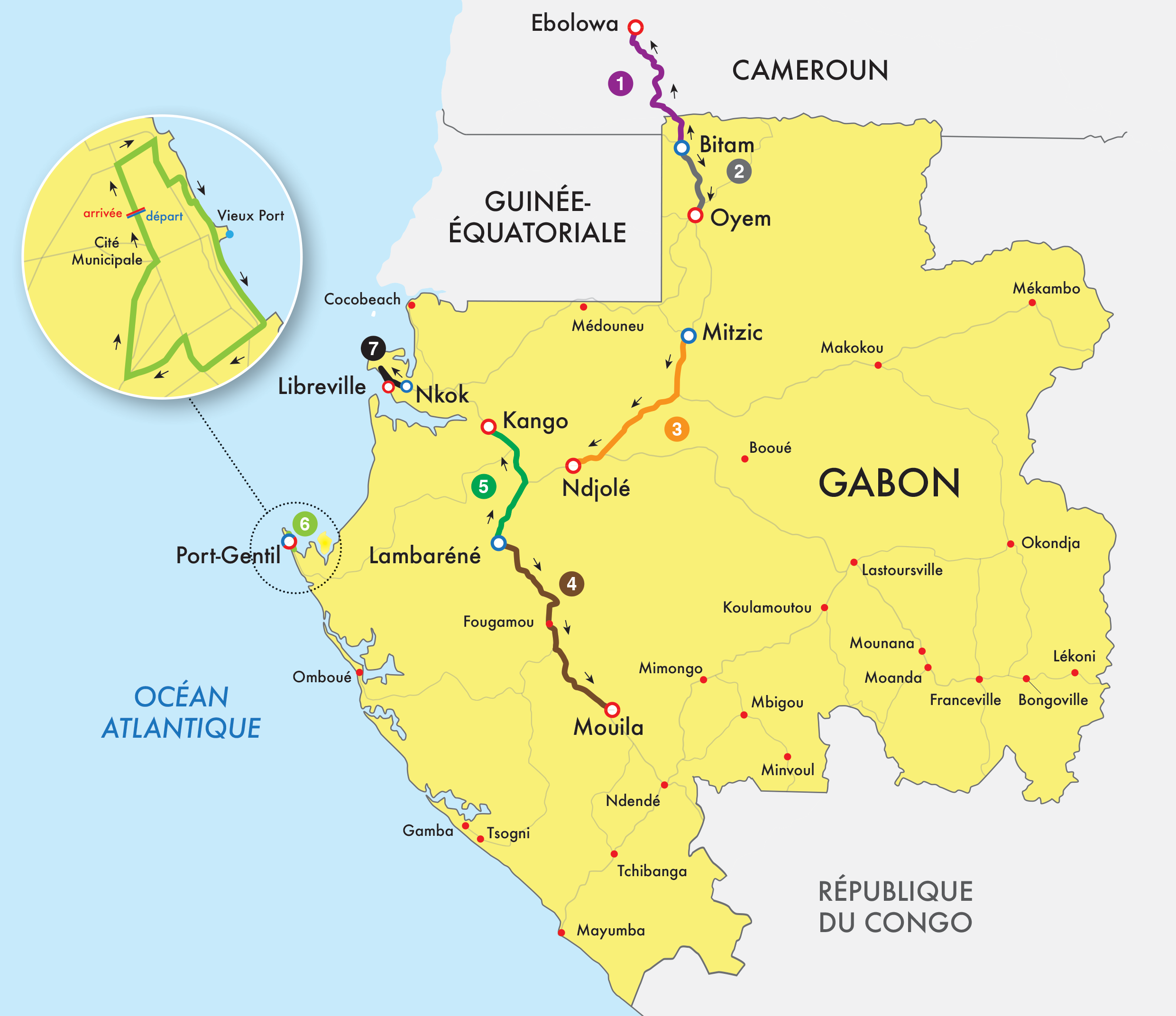 El gran comienzo de la edición 2020 comenzará en la provincia de Woleu-Ntem, en el norte del país. La ronda 2.1 UCI del África Tour cruzará cinco provincias de las nueve provincias del país, además del vecino Camerún. La capital Libreville albergará el cierre.