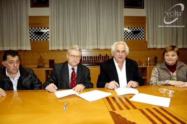 El alcalde Josep Maria Corominas, y el presidente de la Volta, Rubén Peris, firmaron en la Sala Gussinyé del Ayuntamiento de Olot el convenio de colaboración para la 95a Volta Ciclista a Catalunya. Olot una de las poblaciones con más tradición ciclista de Cataluña acogerá un final de etapa de la 95a Volta Ciclista a Catalunya que tendrá lugar el 24 de marzo de 2015.