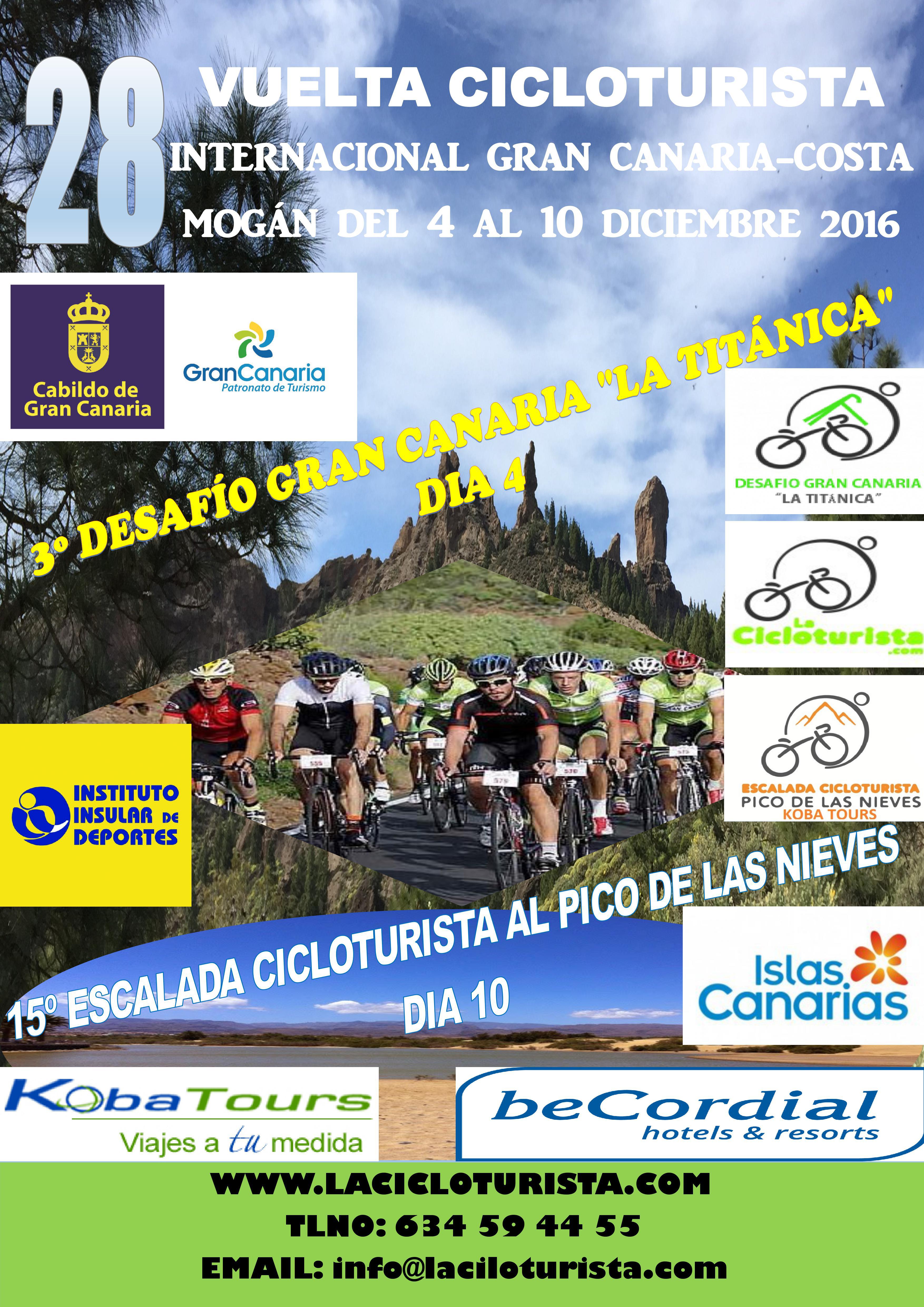 El reportaje incluye un resumen de lo acontecido a lo largo de las cinco etapas de la 28ª Vuelta Cicloturista Gran Canaria – Costa Mogán “Be Cordial”, en el 3º Desafío Gran Canaria: “La Titánica” y en la 15º Escalada al Pico de Las Nieves “El Puerto más duro de Europa-KovaTours”.