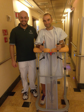 Por su parte, Ángel Vicioso ya ha empezado a andar por los pasillos del hospital de Roma donde fue operado de su fractura múltiple de fémur, tras su caída en la sexta etapa del Giro de Italia.