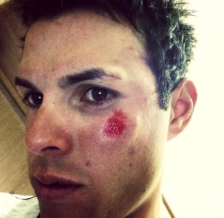 Francesco «Paco» Lasca, el velocista italiano del Caja Rural-RGA, ha sufrido una caída en su entrenamiento de hoy que le ha producido un golpe en el pómulo izquierdo como se refleja en la imagen que ha publicado en su red social.