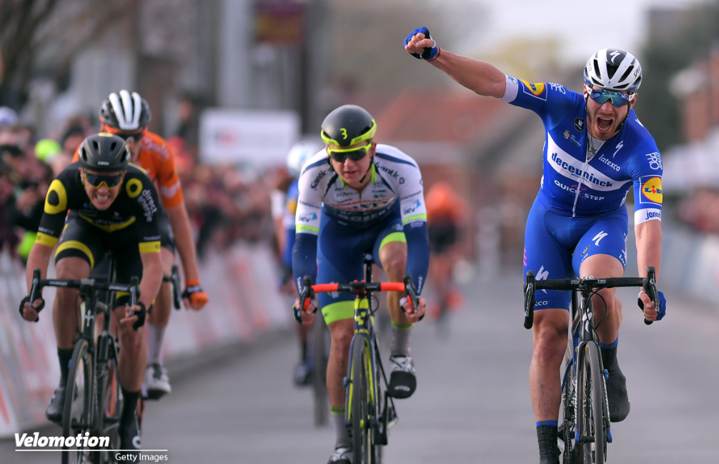 En el último tramo de adoquines, la Rue de Belle Vue, los tres más fuertes se destacarían rápidamente: Boom, Terpstra y Sénéchal. Tres favoritos que se miraban demasiado para que A. De Gendt y Declercq también pudieran regresar. Boom lo intentó de nuevo, Sénéchal cerró el hueco y Declercq se benefició de manera idónea al saltar a la espalda de todos. El ataque de Declercq llegó demasiado pronto, Boom se dispuso en punto del cuarteto perseguidor lanzado el sprint en la recta de meta pero en los metros finales todavía faltaba la última palabra de Florian Sénéchal. El francés, guardando fuerzas tras la apuesta de Declerq, pudo aprovechar su mayor punta de velocidad y frescura para rubricar otro éxito para los pupilos de Patrick Lefevere. Victoria que supone la primera como profesional para Sénéchal, decimocuarta para el equipo belga y la tercera consecutiva en el estreno de la campaña de clásicas, tras las logradas por Stybar y Jungels, para un conjunto que empieza a dominar la primera a su antojo.