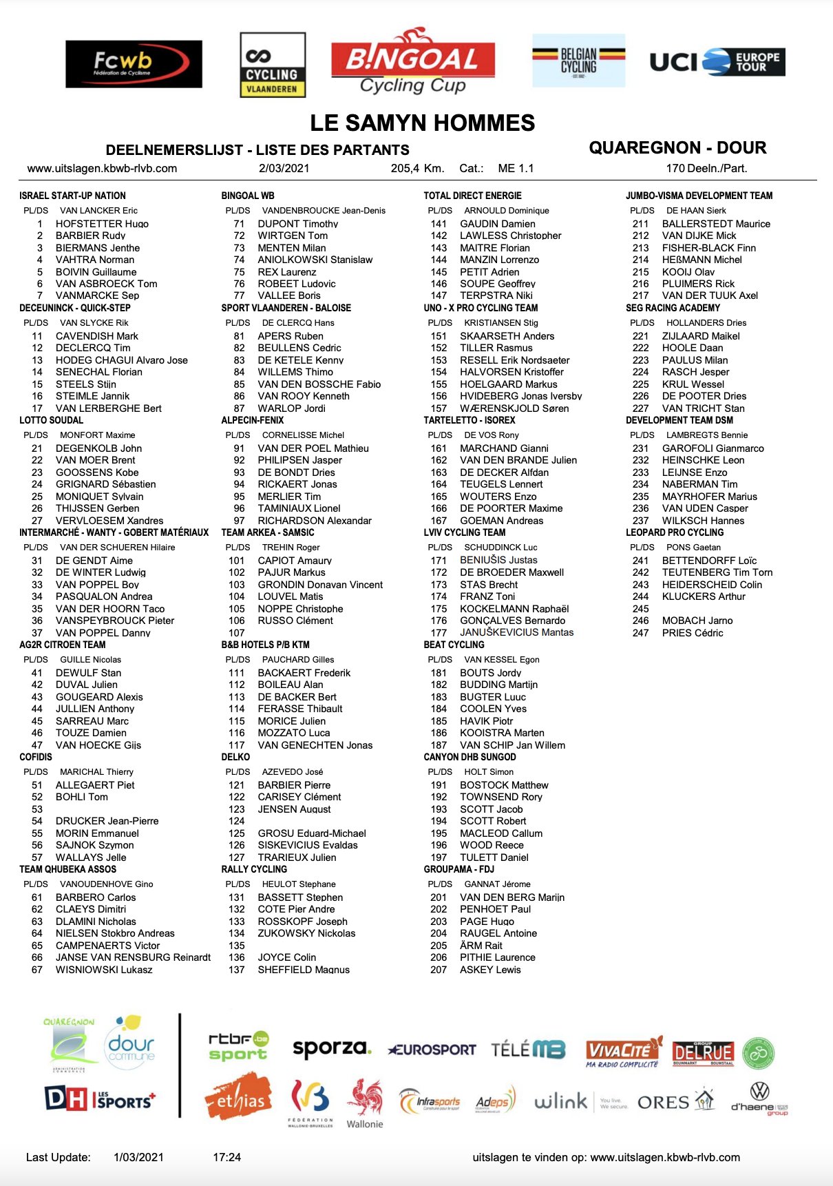 Tras la doble cita belga con el Circuito Het Nieuwsblad y la Kuurne-Bruselas-Kuurne en Flandes, la actividad profesional se traslada a Valonia con Le Samyn con dos carreras para ambos sexos, ambas 1.1 UCI.