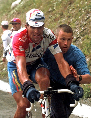 La tarde del 6 de julio de 1996, los adultos (y no tan adultos) españoles que se disponían frente al televisor para visionar la séptima etapa del Tour de Francia, primera de alta montaña (199 kilómetros, entre Chambery y Les Arcs), en la que se esperaba que el villavés diera un nuevo golpe de autoridad en la carrera, sufrieron un envejecimiento súbito, un indefendible directo al mentón que les dirigió a la lona y les despertó de un sueño (el de la consecución del sexto Tour consecutivo [cifra nunca antes alcanzada]).