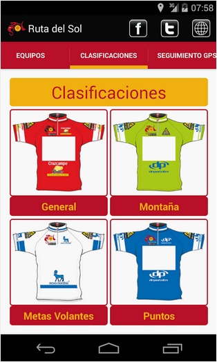“Ruta del Sol” es la aplicación oficial gratuita de la 60ª Ruta del Sol, Vuelta Ciclista a Andalucía, que se celebra del 19 al 23 de febrero, con la colaboración de Mio. Se puede descargar en Google Play con el nombre Ruta del Sol.