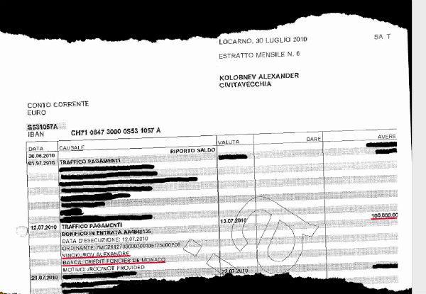 También fueron desveladas las transacciones bancarias enviadas por los tribunales suizos a los investigadores italianos. Vinokourov envió dos cheques a Kolobnev por importes de 100.000 € y 50.000 €, respectivamente, de su cuenta de un banco monegasco a otra suizo de Kolobnev, corredor residente en la Comunitat Valenciana.