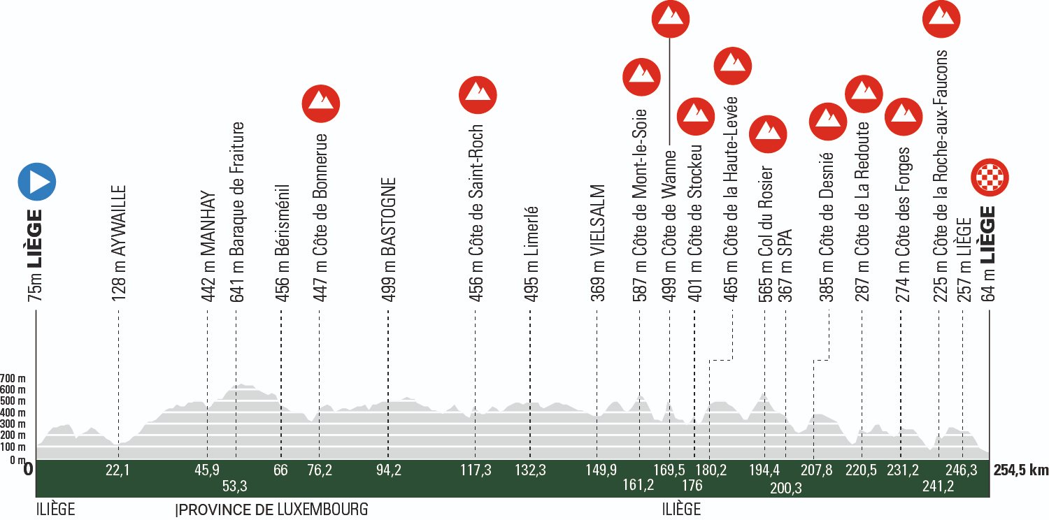 Leijnse, Calmejane, Vliegen y Romeo no pudieron mantener el ritmo en la ascensión al Mont-le-Soie y pronto los escapados restantes fueron perseguidos. Cuando los escapados supervivientes iniciaron la ascensión a la Côte de Wanne, su ventaja sobre el pelotón era de sólo 14″, pero al principio de la subida fueron engullidos por el pelotón. Gelders, Rochas, Scaroni, Doubey y Ourselin atrapados por el pelotón en las primeras cuestas de la Côte de Wanne, en el kilómetro 166.