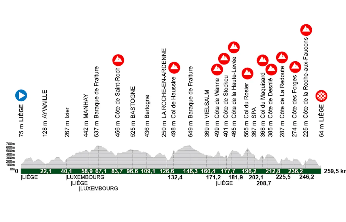 En concreto, el recorrido incluirá el Col du Maquisard y la Côte de Desnié, encadenados entre el Col du Rosier y La Redoute, uno de los puntos clave de la carrera. Tras ellos, el trazado mantendrá su dureza tradicional con el paso por la Côte des Forges y la ya decisiva Roche-aux-Faucons, última dificultad del día situada a 13 kilómetros de la línea de meta, donde previsiblemente volverá a resolverse una de las pruebas más exigentes y prestigiosas del calendario.
