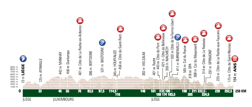 La Decana, que cumplirá su 103ª edición, tendrá cinco kilómetros más y recupera su final tradicional con las cotas encadenadas de La Redoute, La Roche-aux-Faucons y Saint Nicolas antes de llegar a Ans, surpimiéndose así la calle adoquinada Naniot del año pasado. La versión femenina -ya confirmada el año pasado– se estrena sobre 135 kilómetros, de los que los 45 últimos coincide con el recorrido masculino.