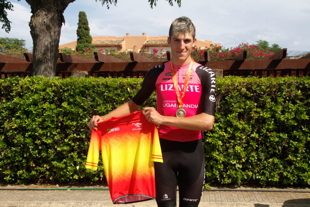 Su temporada ya era para enmarcar, pero siempre hay hueco para una guinda más en el pastel. Es lo que debió pensar Pablo Castrillo, ciclista del Equipo Lizarte, antes arrancar los 21,6 kilómetros que le acabarían coronando como vencedor en el Campeonato de España de Contrarreloj Individual Sub-23. El aragonés fue de más a menos para adjudicarse la presea dorada y el maillot rojigualda en una prueba en la que su compañero de escuadra Hugo Aznar (NAV) rozó la medalla de bronce.