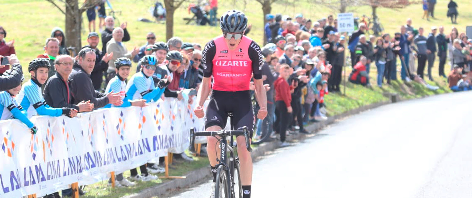 Siete días después de su primera victoria de la temporada, Pablo Castrillo volvió a alzar los brazos este domingo en la Subida a Gorla. El corredor de Jaca puso la guinda a una sensacional actuación de todo el Equipo Lizarte, que consiguió el doblete conSinuhé Fernández (2º) en una de las pruebas más míticas del calendario nacional sub-23. El conjunto navarro cerró así un fin de semana de exhibiciones, con Diego Uriarte como corredor más destacado en la prueba del sábado en Markina-Xemein, donde concluyó cuarto.