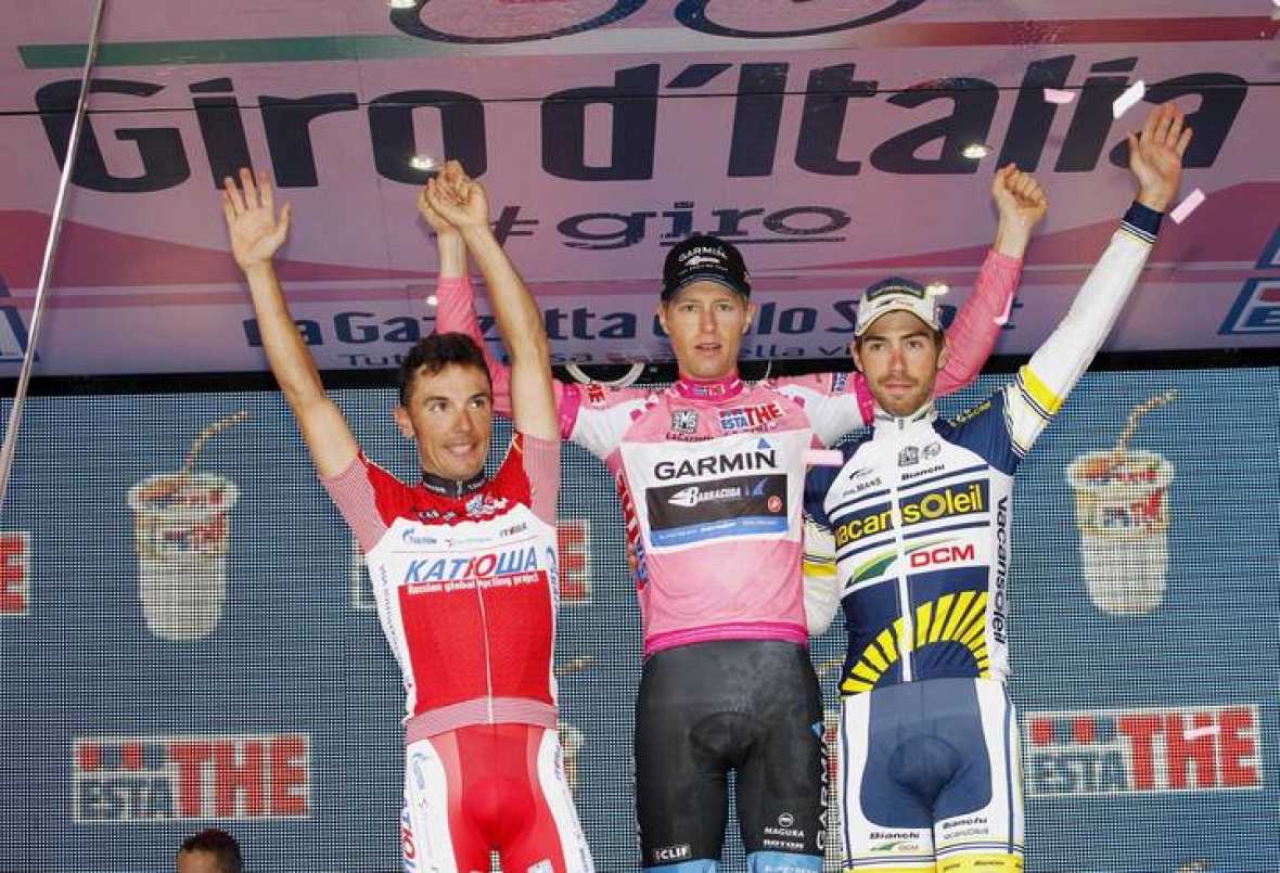 El Giro de aquel año se presentó como una batalla entre dos hombres que, prácticamente (excepción hecha del ya mentado Phinney, el lituano Navardauskas en dos jornadas y Malori en una) coparon el uso y disfrute de la prenda que distingue al mejor clasificado en la general. Hesjedal y Purito, Purito y Hesjedal, en un mano a mano que mantuvo la emoción de la competición hasta el último momento.